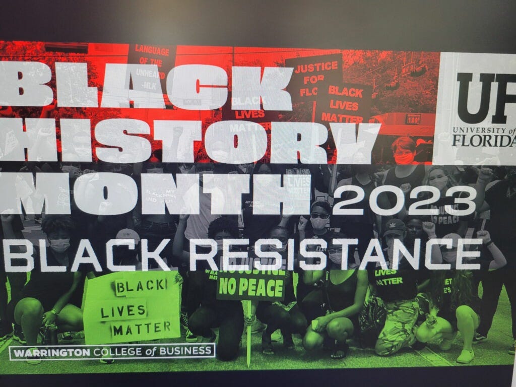 🔥 Yesterday, one of my contacts inside the University of Florida sent me an official screen background that the business school — not the political science department, the business school — asked employees to install on their computer desktops and into their zoom meetings, so that “Black Resistance” and marxist BLM propaganda could be seared into employees’ eyeballs all month: