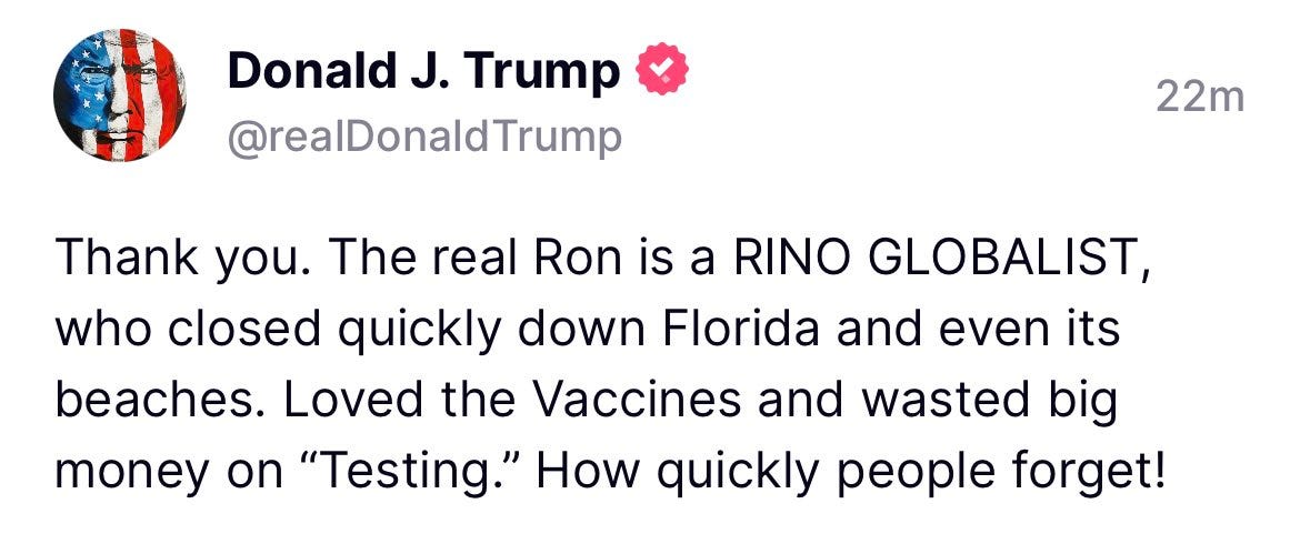 🔥 Yesterday, President Trump posted another comment critical of Governor DeSantis, which predictably got a whole bunch of folks hopping mad and arguing on social media. I’m reporting Trumps’ comment NOT because of the conflict between the two conservative leaders, but because it supports my theory that Trump is setting up corporate media: