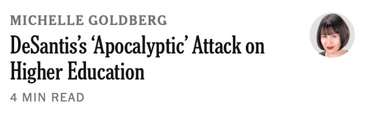 🔥 Speaking of hysterical over-reactions, the New York Times featured a hysterical front-page headline about Governor DeSantis’ efforts to reform higher education in Florida, like by modifying tenure rules: