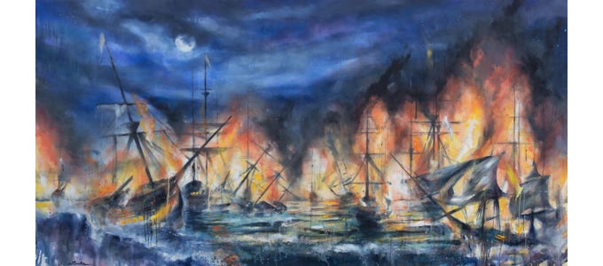 Fifteen centuries later, in 1519, Hernán Cortés stood on the shores of Veracruz with the weight of empire on his shoulders and mutiny at his back. His men, anxious and outnumbered in a hostile land, muttered about retreat. Cortés’s answer seared itself into history: he ordered the ships burned. Smoke coiled into the Mexican sky as their only way home crackled into ash.
