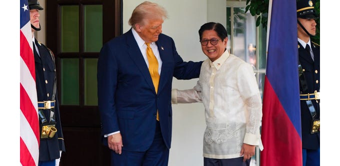Yesterday, seated in the Oval Office beside a visibly stunned Philippine President Ferdinand Marcos Jr. —who thought he was attending a trade deal announcement and suddenly looked like he’d accidentally wandered into a political nuclear test— President Trump said the slowly boiling truth out loud.