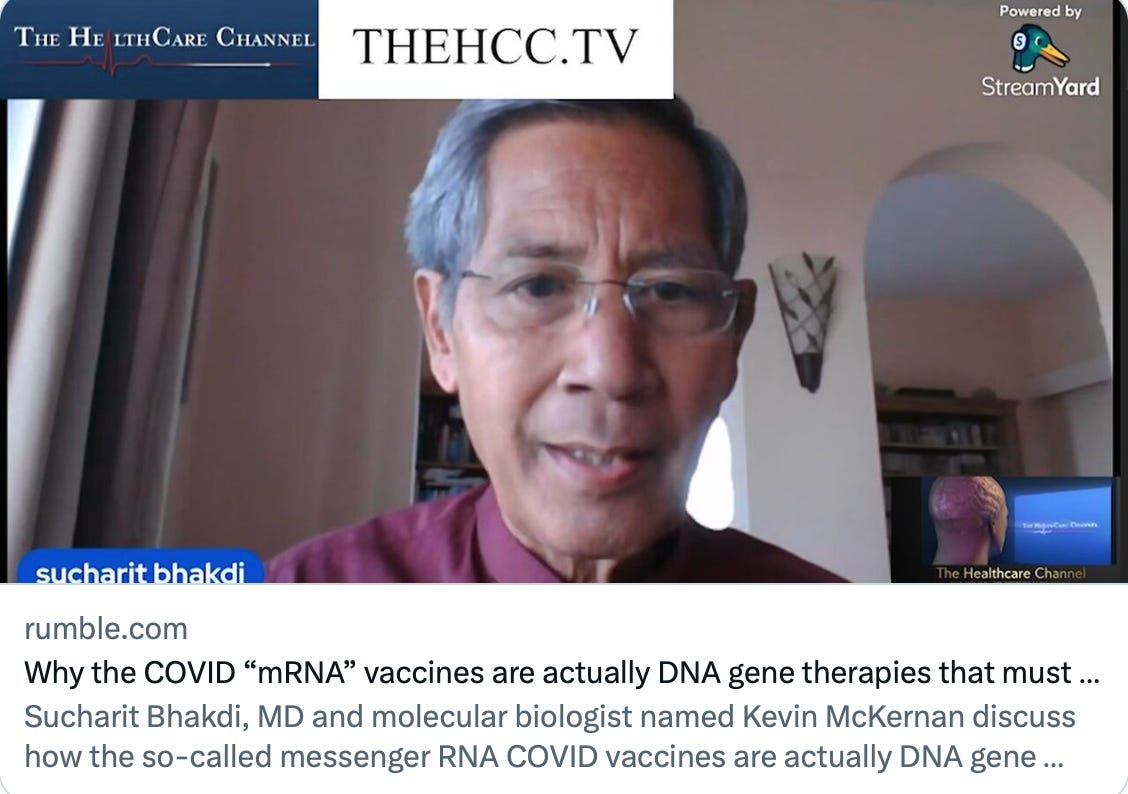 🔥 Retired Thai-German immunologist Sucharit Bahti recently presented on this issue to a panel organized by Children’s Health Defense. The HealthCare Channel did a follow-up, interviewing Dr. Bahti along with researcher Kevin McKernan.