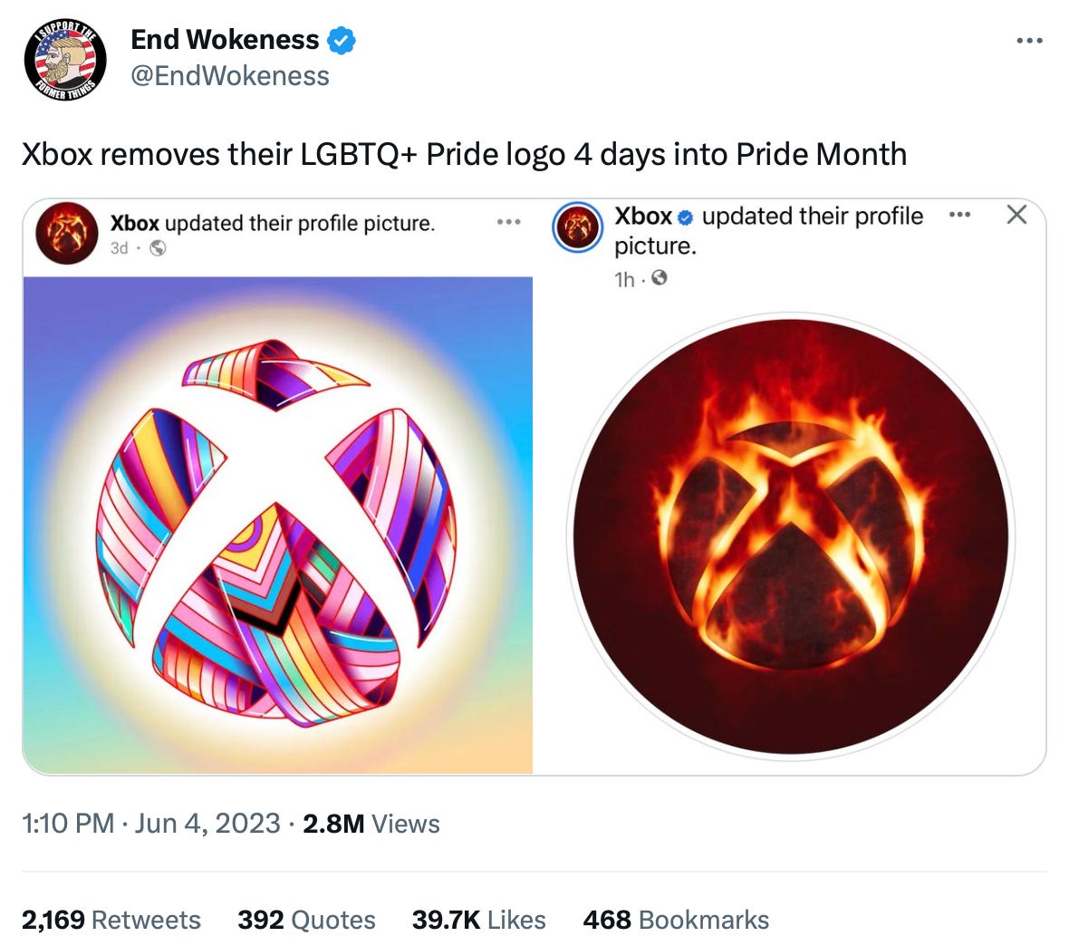 Well, Xbox quietly reversed course and went back to normal in only 4 days. So much for Pride “month.”