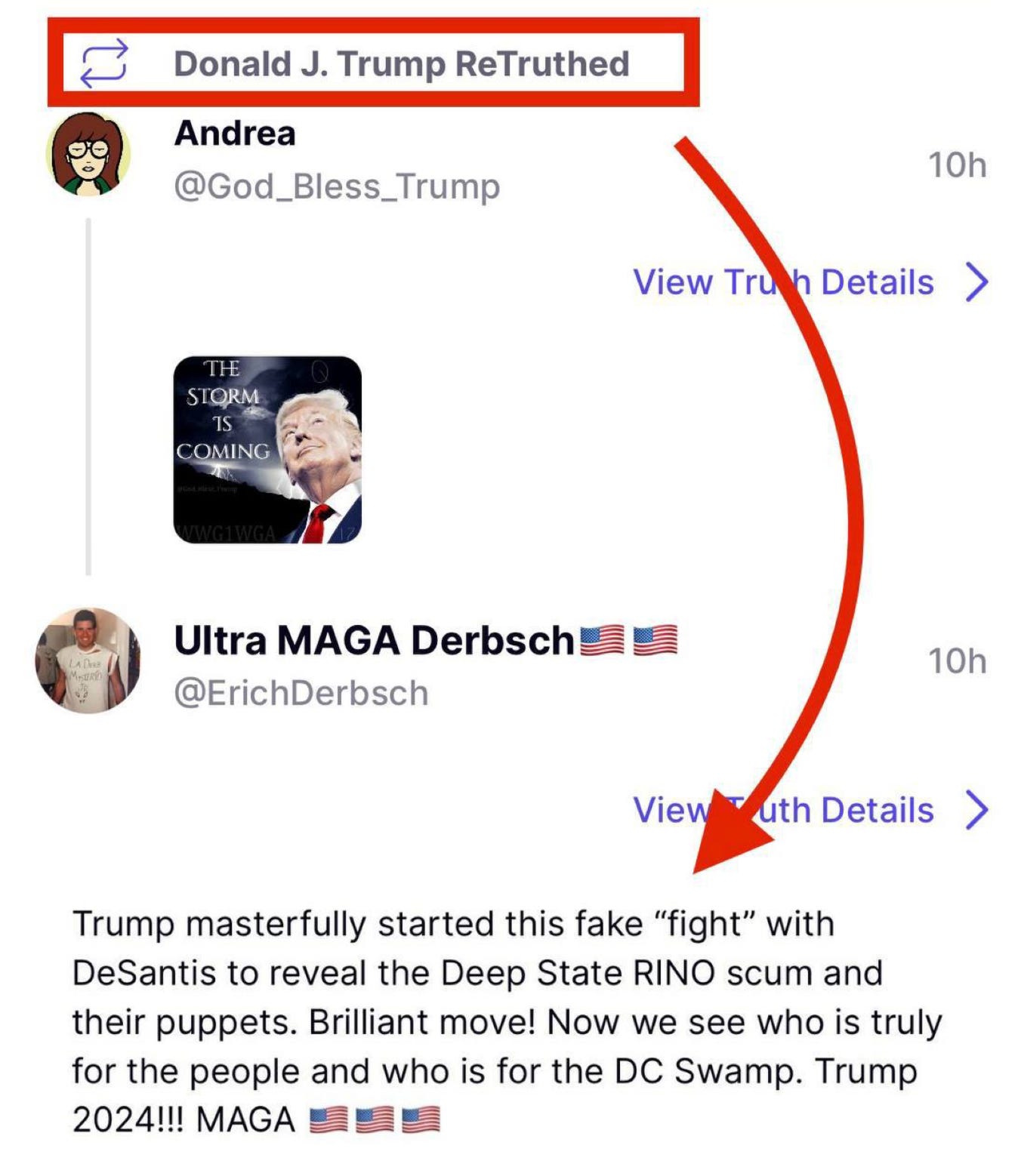 🔥 On Thursday, Trump shocked and infuriated lots of Republican voters after he posted a spicy series of Truths (like tweets) on his social media network. They were mostly mildly critical of Governor DeSantis, but were infused with the traditional disrespectful Trump tone — and in a couple places, were arguably downright insulting.