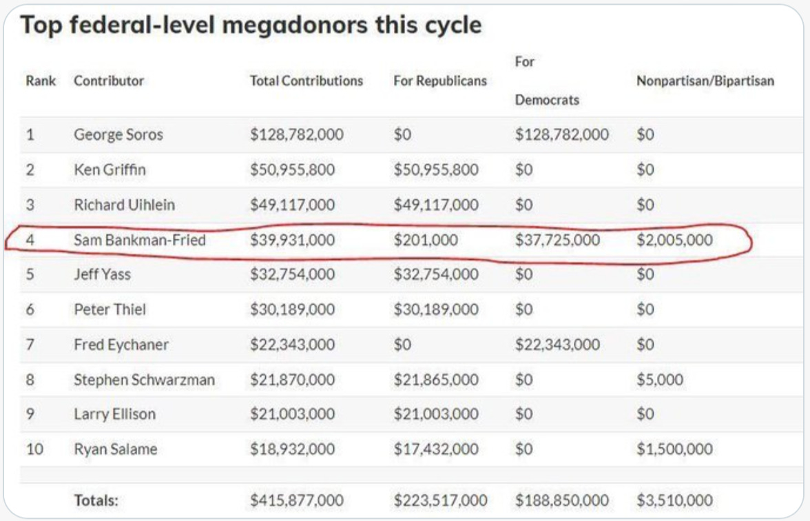 What we know for sure is that Sam went from being an unread but politically-connected zero in May 2019 to a billionaire in a few months, just in time to donate a metric ton of politico-bucks and help Biden (and other democrats) win the 2020 election.
