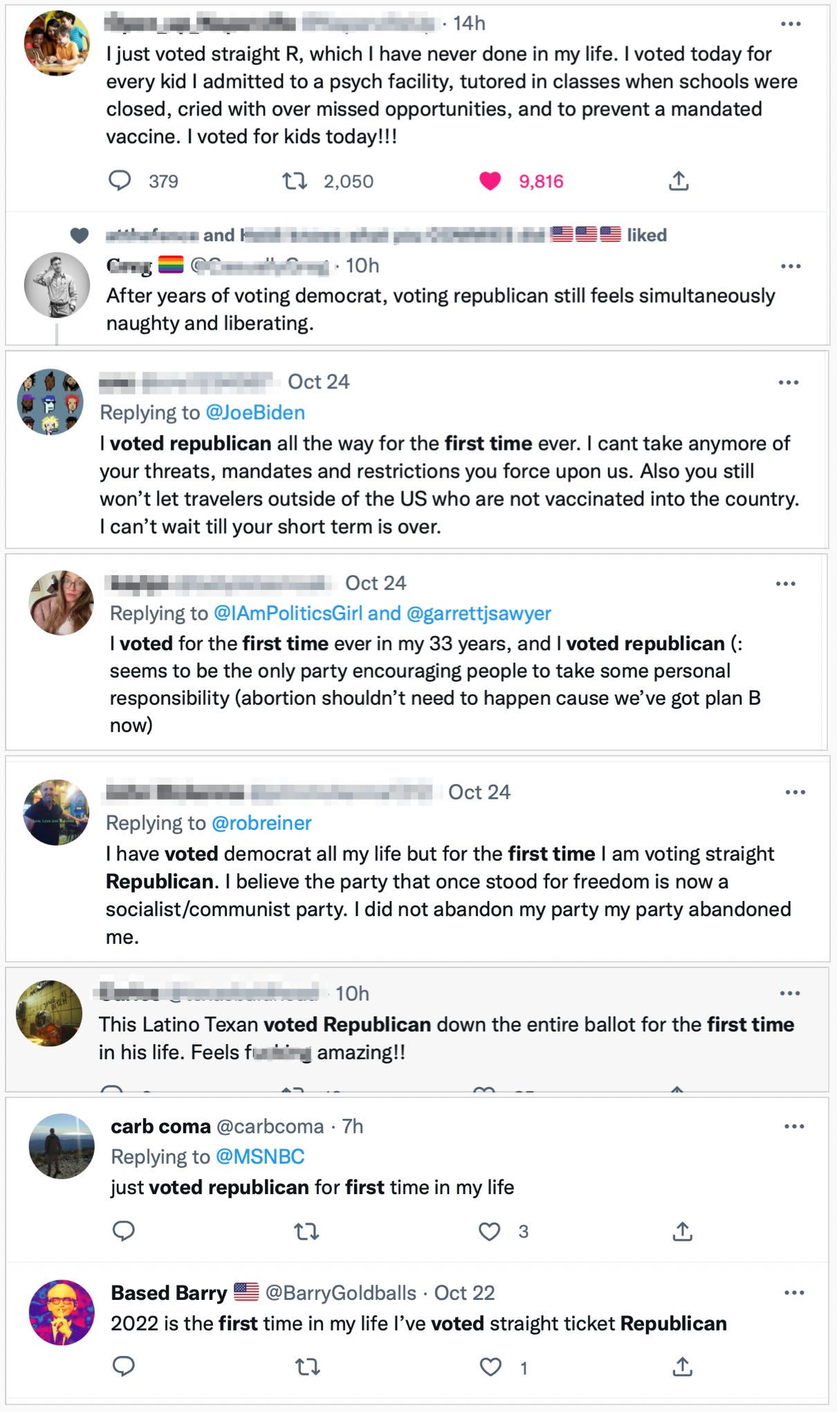 🔥 In fact, the trend is so obvious that there’s a counter-trend of folks claiming to be Republicans voting democrat ‘for the first time’ because Joe Biden — I am not making this up — is ‘one of the greatest presidents we’ve ever had.’ E.g.,