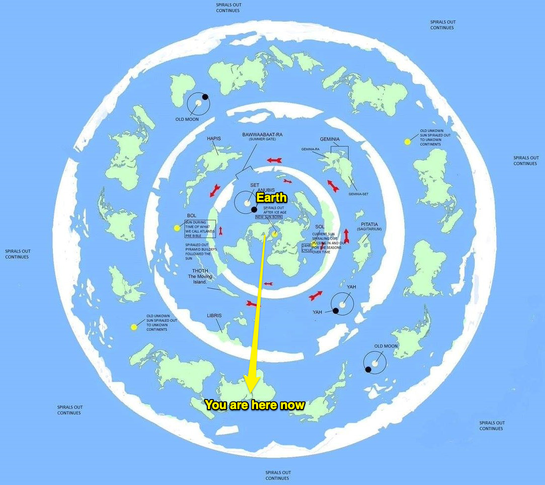 We are so far into uncharted territory at this point that we can safely use the map to mop up the Fruity Pebbles Blizzard the kids spilled in the back seat while fighting over control of the temperature setting. In fact, we’re so far off the map, it’s starting to make me believe in the Flat Earth theory, with all those new, undiscovered continents lying far beyond the antarctic ice wall.