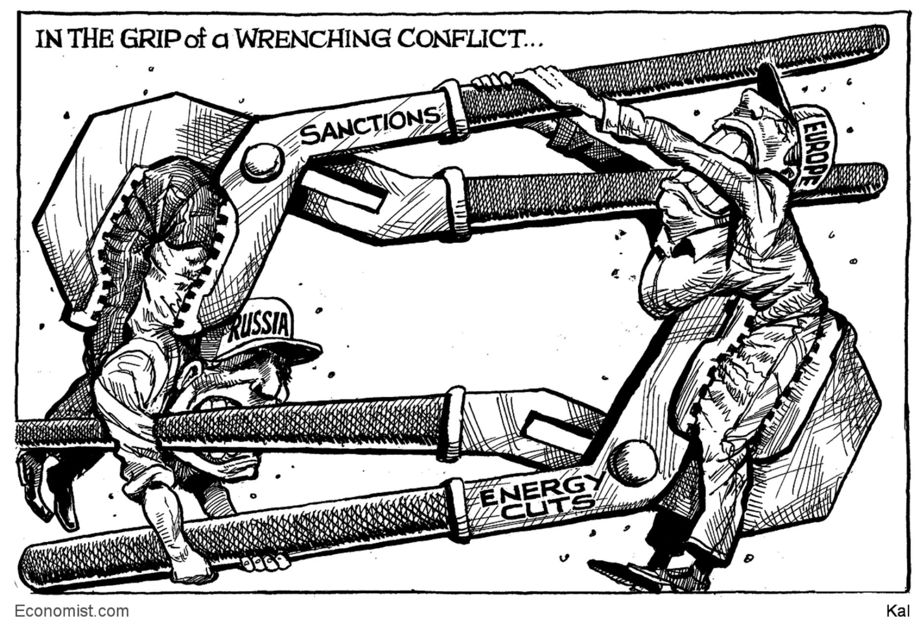 🚀 It looks like I’m not the only one who sees the European situation as a destabilizing mutual sanctions battle between Europe and Russia. The Economist — no bastion of independent analysis — ran this cartoon last week: