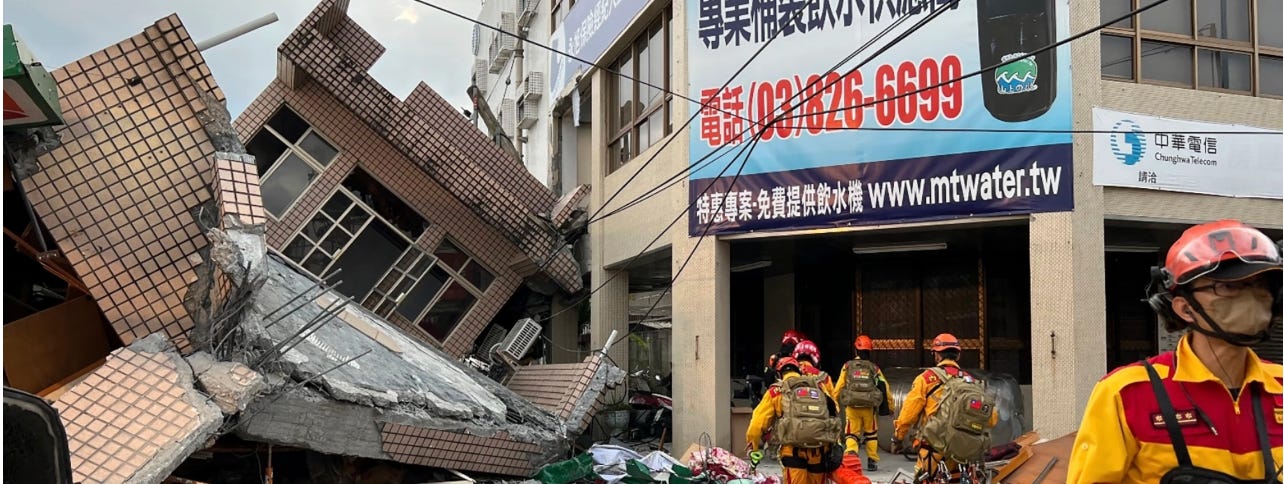 🔥 A strong earthquake hit Taiwan over the weekend, reported as anywhere from 6.4 to 7.2 on the Richter scale. Images included everything from shaking buildings to avalanches to toppled buildings.