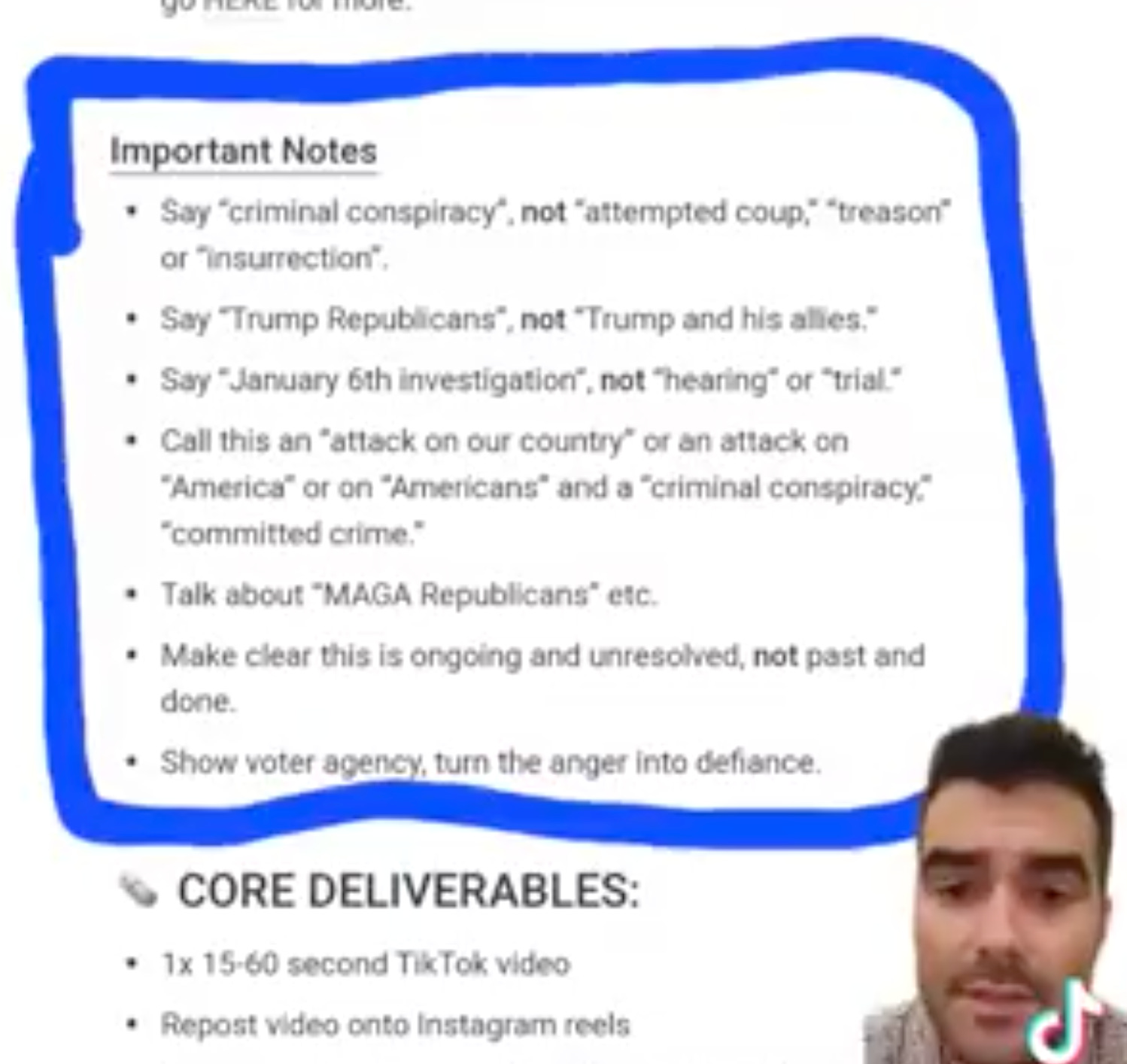 Curious, he responded that he was interested, and then got a link to a private web page providing instructions for what needed to be in the paid post. The Good Info Foundation (or, the “GIF”) wanted him to talk about January 6th, but from a certain, er, point of view: