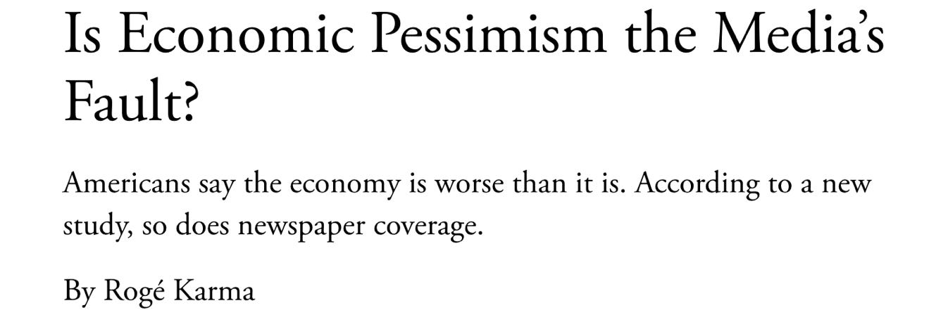 What, pray tell, could explain this vibey disconnect? I wouldn’t call it a vibecession. I would call it a mediacession.