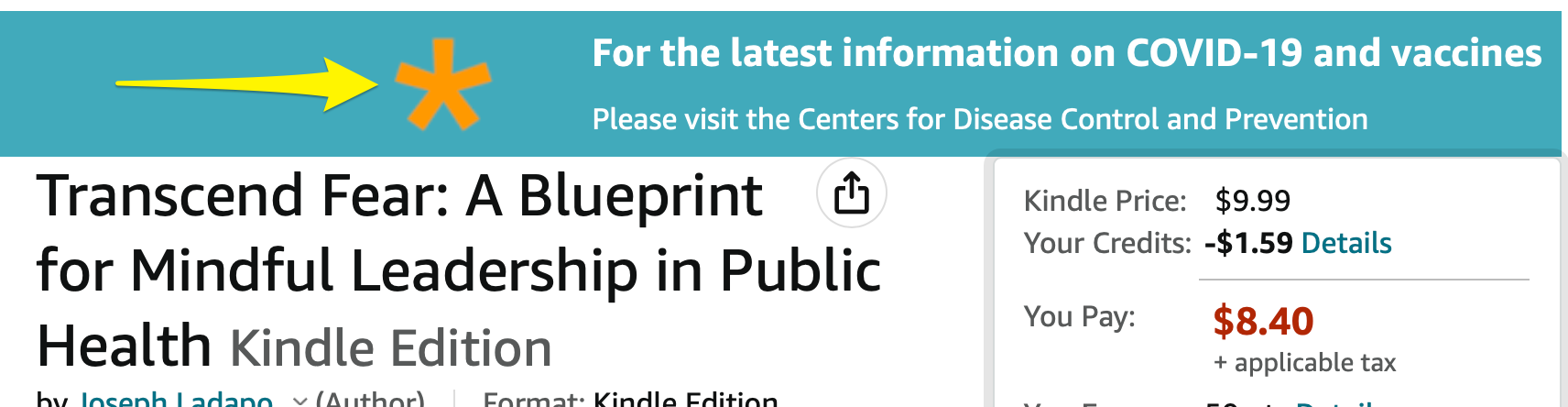 🔥Florida’s courageous Surgeon General Dr. Joe Ladapo also just released his own book, “Transcend Fear (A Blueprint for Mindful Leadership in Public Health).” The book’s Amazon listing includes a prominent banner helping readers find the CDC so they can get ‘reliable’ misinformation about the covid vaccines: