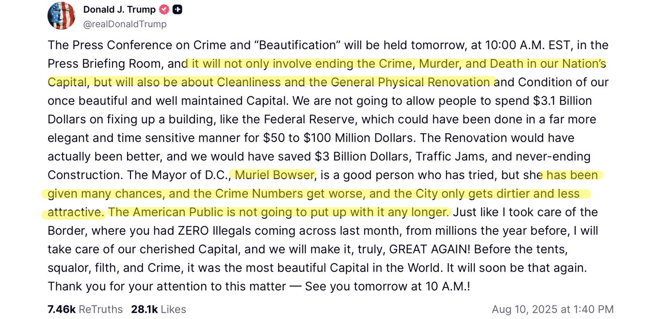 All the pearl clutching over Trump’s threat to re-federalize DC is more media nonsense.