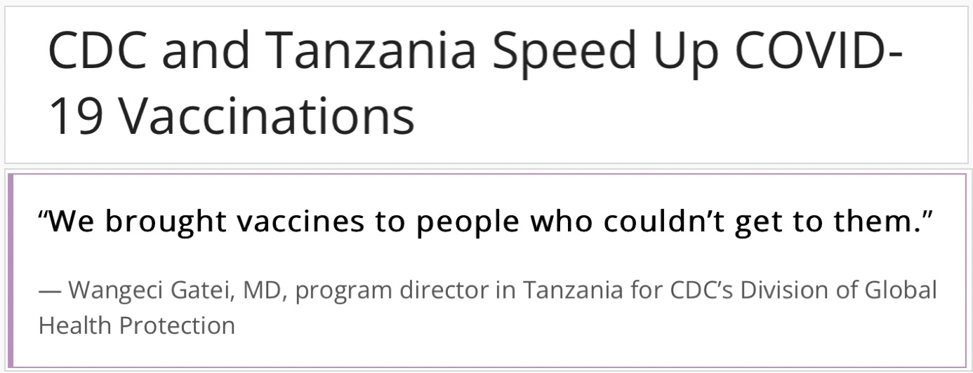 The Tanzanian report follows reports from last month of Guinea’s first-ever outbreak of Marburg, which caused 11 deaths. The good news is in 2021 the CDC was in Guinea, too, protecting people against covid: