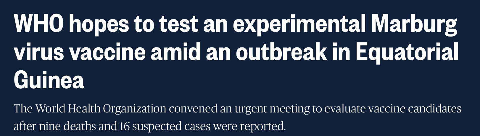 💉 Bloomberg ran a story this morning headlined, “Deadly Marburg Virus Spreads to Tanzania for First Time.”
