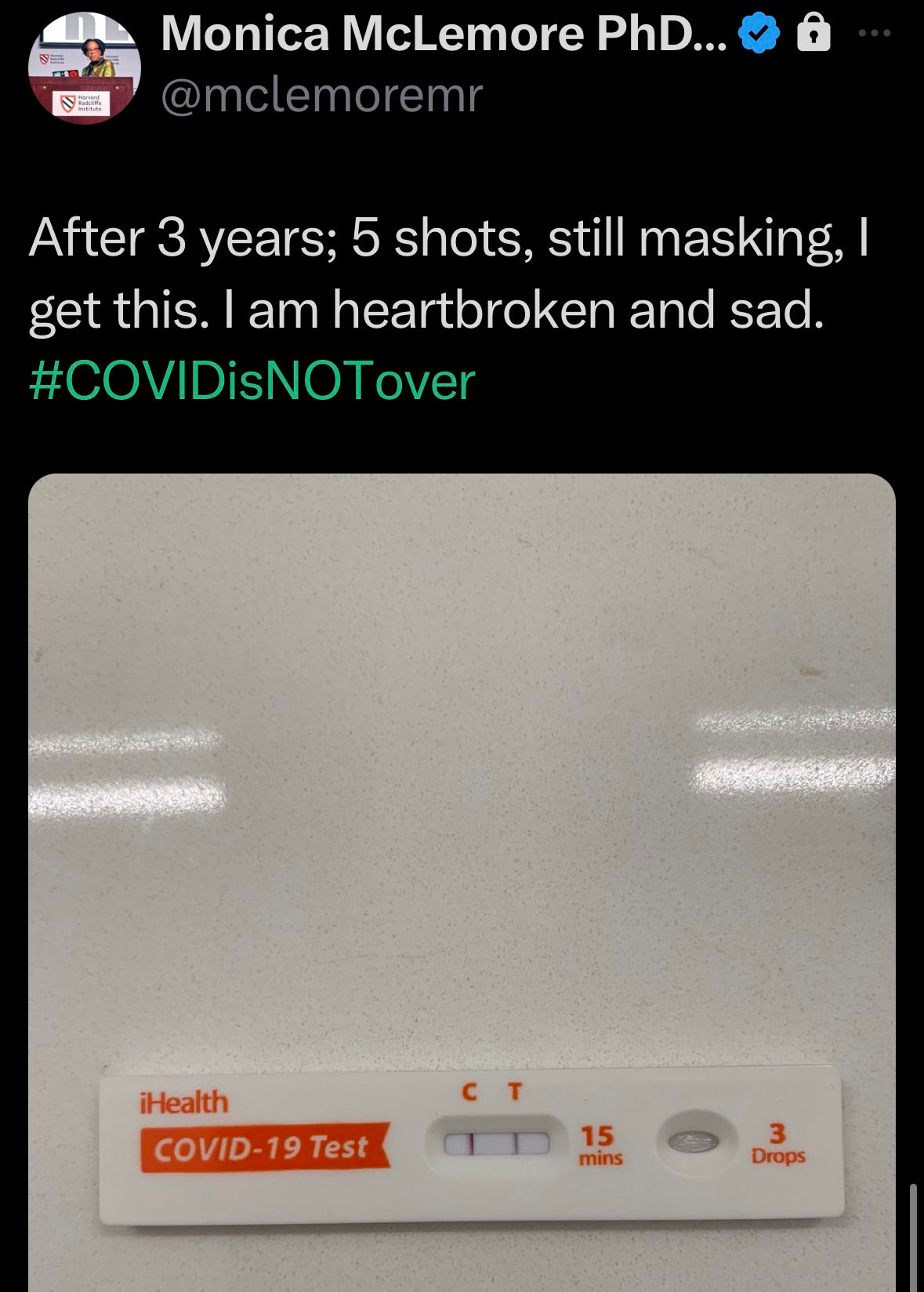 Why did she lock down? Well, she got frustrated about another positive covid test after “3 years, 5 shots, [and] still masking.” In her frustration, she broke the narrative when she tweeted this: