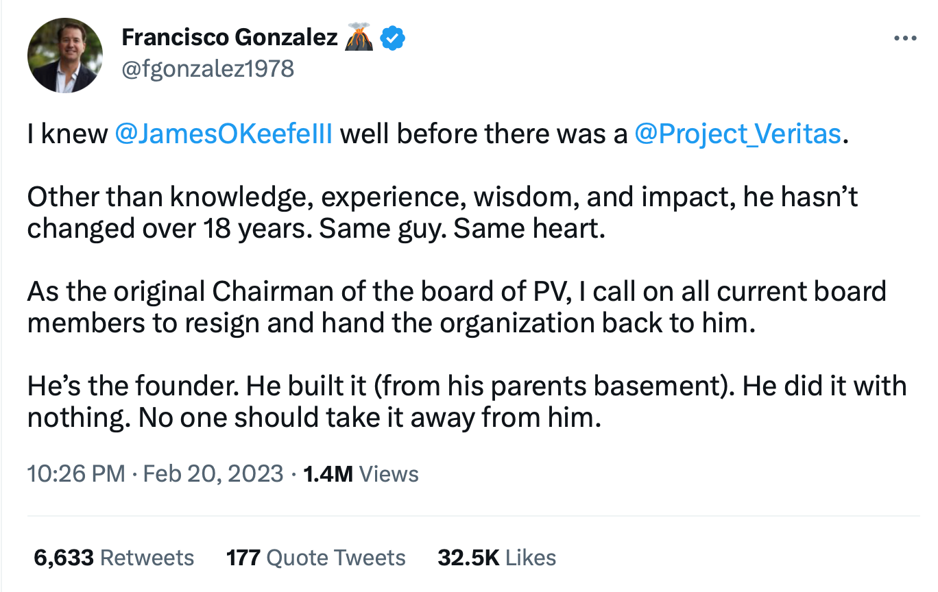 Next, Project Veritas’ former board chairman also called on the current board members to resign: