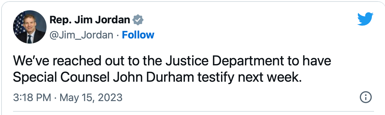 Disappointingly, Durham did not issue any new criminal charges. It’s possible Durham might have been a smidge discouraged after the first three individuals Durham charged were found ‘not guilty’ by DC juries.