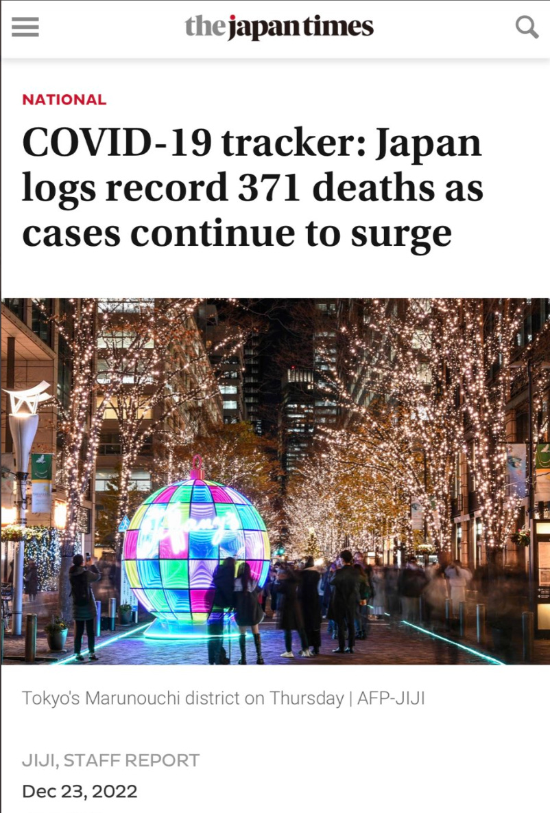 Good morning, C&C, it’s the last Thursday of 2022! Your roundup today includes: New Multiplier Orders; China’s massive post-lockdown covid wave frightens the fully-jabbed West; the Japanese experience, and you’ll never guess where they’re finding spike protein; Japanese celebrity dies after dailyblogging her 145-day death from vaccine injury; I respond to a critic; J6 Committee heavyweight Jamie Raskin gets a sudden and unexpected cancer; reggae blues as SADS strike Jamaican artist; seniors surprise by skipping boosters; good weather cripples Southwest Airlines, definitely NOT staffing problems; and Ukraine gets some sinister help.