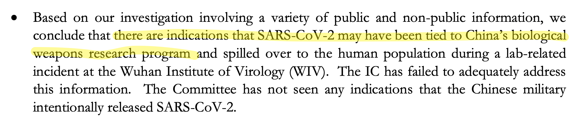 🔥 Last week, Republicans on the House’s Permanent Select Committee on Intelligence released their fascinating minority report which, among other things, concluded not only that covid was released from the Wuhan lab, but also that it may have been a Chinese MILITARY BIOWEAPON: