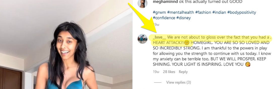 Completely coincidentally, last month 21-year-old Megha posted on her Instagram that she’d had a minor heart attack: