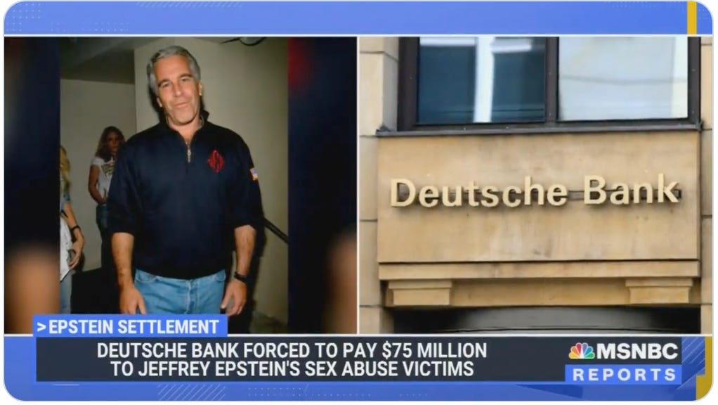 On Thursday, the Wall Street Journal ran a story headlined, “Deutsche Bank to Pay $75 Million to Settle Jeffrey Epstein Accusers’ Suit.” The subheadline explained, “A civil complaint alleged the financial institution facilitated the disgraced financier’s sex-trafficking ring.”