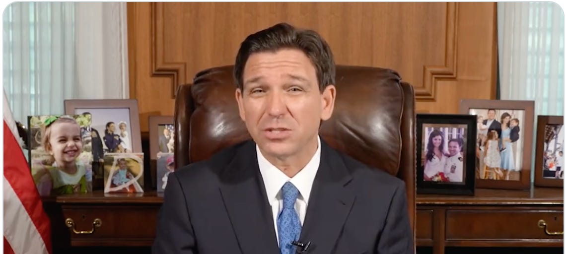 🔥 DeSantis, perhaps occupied with a crypto-candidacy, also appeared on Dinesh D’Souza’s podcast, and said bluntly: “If you’re taking off the private parts of some 15-year-old kid, you should go to jail.”