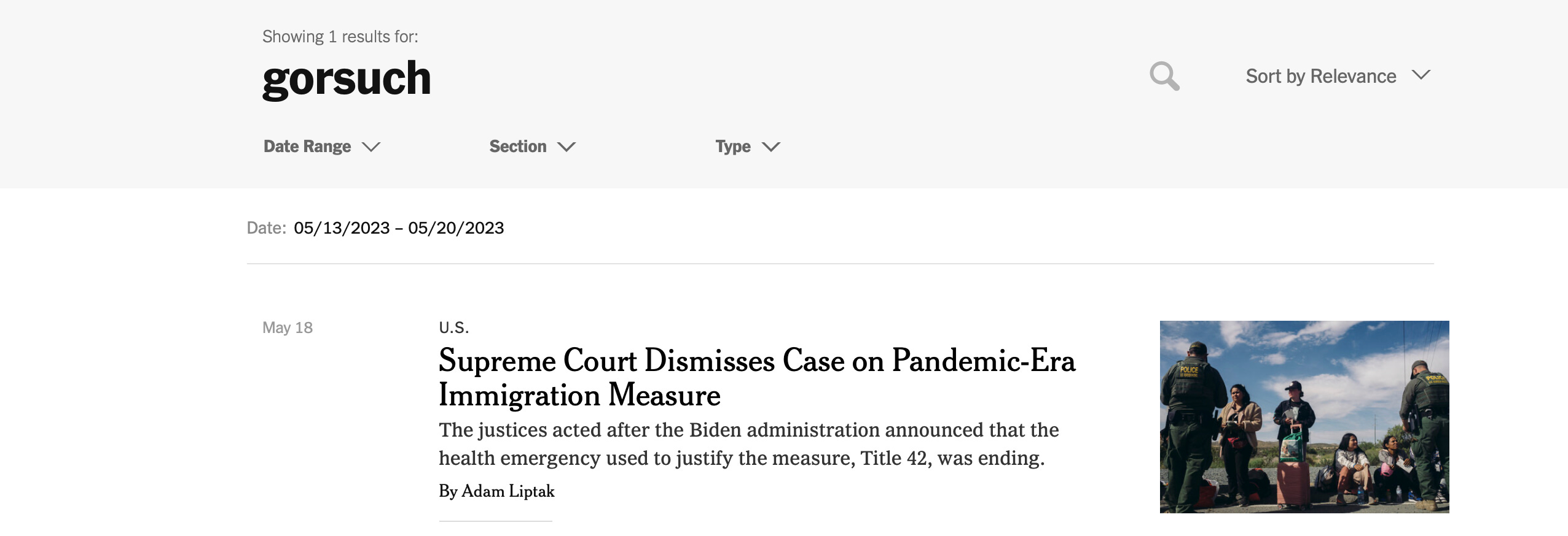 Revoltingly, the Wall Street Journal didn’t report Justice’s Gorsuch statement at all, that I could find, and the New York Times only mentioned the Justice’s remarkable comments late in a story about Title 42: