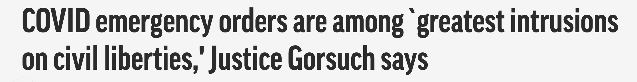 Much of the Supreme Court’s defense of civil liberties during the pandemic can be found right in the footnotes to Gorsuch’s statement, but I’m also recalling lots lower courts like Texas’ Fifth Circuit, or even my own First District Court of Appeal in Florida, which granted my mask appeal and immediately made mandatory masking in much of Florida unconstitutional.