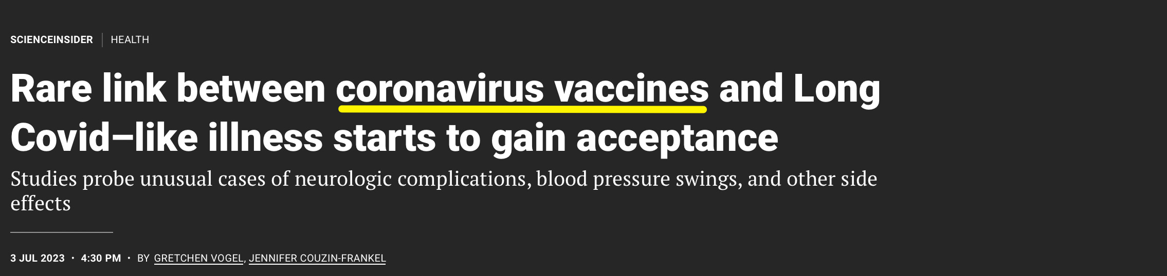Now, to be perfectly fair, the article does its damndest to claim that vaccine-induced long covid injuries “seem very rare” and probably happen less often than virus-induced long covid. I don’t agree with or believe this analysis, and think it was only included to evade journalistic censorship.