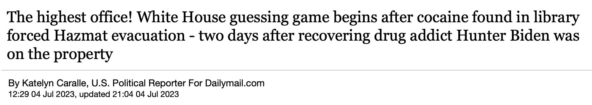 Good morning, lucky C&C readers! Owing to a vexing inability to sleep late, you get a roundup today even though I was planning to sleep in after an injury-free and mostly-peaceful late night of blowing things up to celebrate American independence. Plus there was just too much good news to report, I couldn’t stand it. Your bonus roundup today includes: more details emerge about the White House’s cocaine addiction; major pro-freedom decision entered in Missouri v. Biden; link established between jabs and debilitating, relentless Long Vax; the jab tide might be turning; and great news about this week’s top new movie.