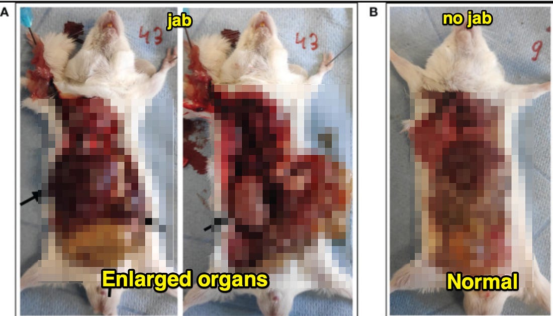 The researchers injected 14 five-week-old mice with the Pfizer jab, in order to investigate vaccine-induced myocarditis. To their surprise, the day before they ‘harvested’ the mice, one of the cute little rodents died, suddenly and unexpectedly. It had been eating and running around fine the whole time and then — gaaack. There was no sign; it even weighed the same as its mousy peers. No symptoms.