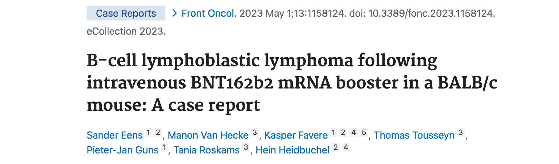 I noted this interesting sentence from the abstract: “Our [mouse] case adds to previous clinical reports on malignant lymphoma development following novel mRNA COVID-19 vaccination[.]”