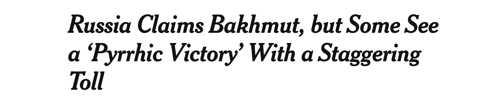 🔥 Consistent with other mendacious corporate media takes, the propagandistic New York Times ran a story yesterday labeling Russia’s victory in Bakhmut as only a “Pyrrhic victory,” meaning a costly win that accomplished nothing.