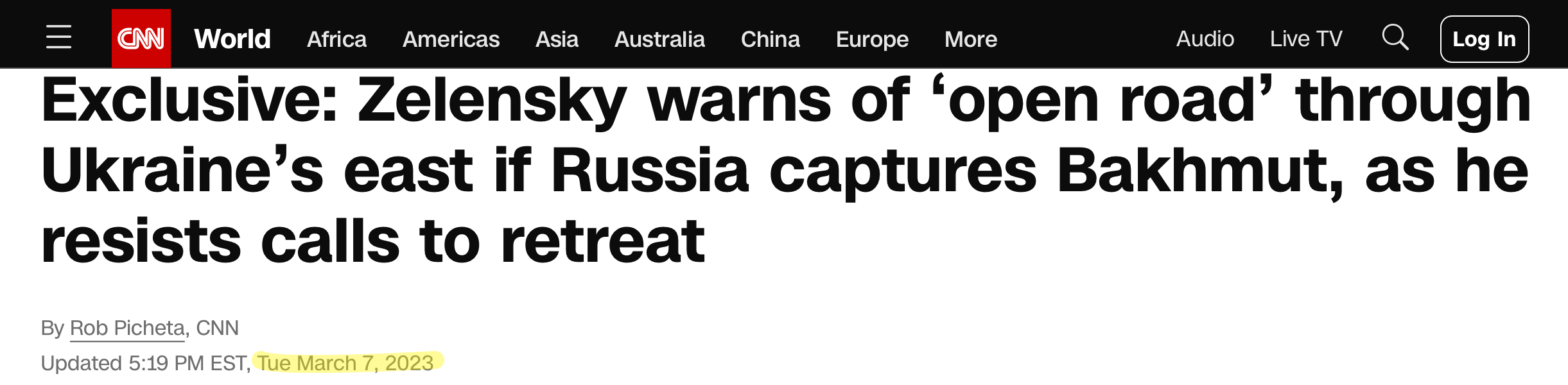 The New York Times thinks its readers are so dumb they can’t remember that the story was the exact opposite only a few weeks ago. In April, Bakhmut was critically important, but a few weeks later in May — after the Russians won — it suddenly became strategically meaningless.