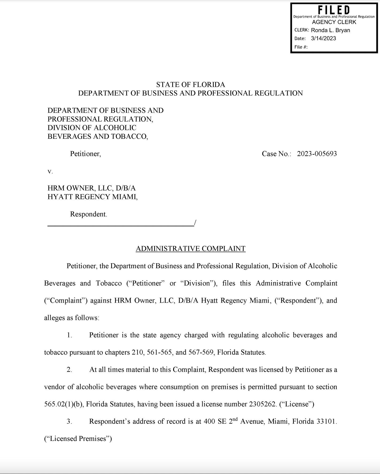 🔥 This morning, Florida’s Department of Business Regulation filed a complaint seeking to revoke the Miami Hyatt’s liquor license for hosting an all-ages Christmas drag show, after being formally warned in late December: