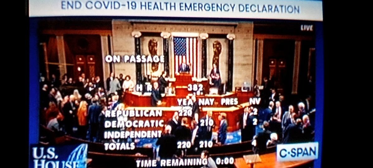 Some democrats would have voted to end the state of emergency except for Biden’s announcement to end it on May 11th. So now you know: why Biden ended it, why it’s taking so long to end (to squeeze as much out as possible), and that the Republicans pushed Biden to do it.