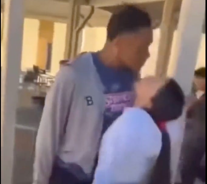 Meanwhile, over in Riverside, California, a large, tall boy at MLK High School who’s been using the ladies bathrooms and locker rooms, beat up two girls, and that was after exposing his man stick and spitting on them.