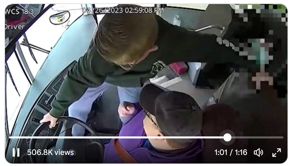 🔥 To warm your heart up even more, enjoy this next video clip of youthful 7th-grade hero Dillon Reeves, 13, who leapt into action, grabbing his school bus’s steering wheel, after the driver had a sudden and unexpected “medical complication.” Reeves even directed other kids to call 911 while he was driving in what looks like a very awkward position.