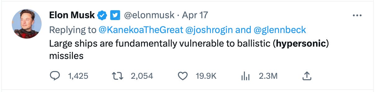 Altogether, I think it is safe to assume, absent contrary evidence, that the United States has been caught flat-footed by a superior military technology that probably instantly rendered an entire generation of warfare obsolete. What this means for the Proxy War, or for Taiwan, remains to be seen.