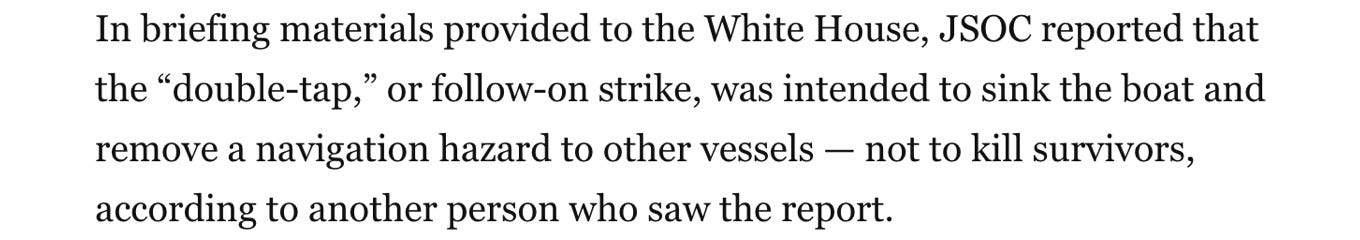 Yesterday, the New York Times ran a widely covered story under the dramatic headline, “Lawmakers Suggest Follow-Up Boat Strike Could Be a War Crime.” War crimes! Already! The sub-headline sneered, “Top Republicans have joined Democrats in demanding answers about the escalating military campaign the Trump administration says is aimed at targeting drug traffickers.”
