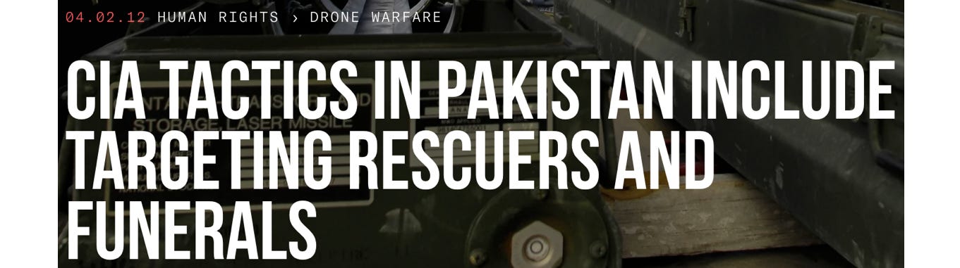 “President Obama,” the UK Times reported at the time, “claimed that the drone campaign in Pakistan was a ‘targeted, focused effort’ that ‘has not caused a huge number of civilian casualties.’” You can’t make an omelet without breaking a few Pakistani firemen.