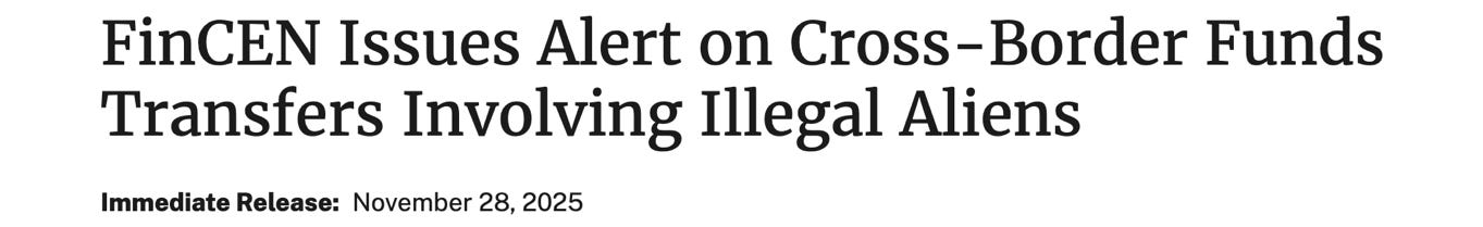 Bessent’s press release signals to money servicers that Treasury intends to enforce those rules more aggressively. And, although the rule isn’t new, and while it doesn’t shut down remittances altogether, the additional scrutiny will further cut them back in practice. It’s like a slowly tightening noose.