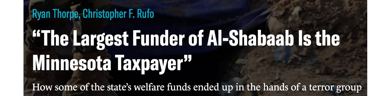 A billion dollars. Maybe more. Last week, Chris Rufo published a story in City Journal, claiming that American welfare dollars flowed directly to Somali terrorists and other no-good-niks: