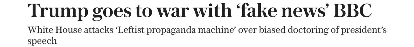 Talk about throwing in the towel. Yesterday, the Washington Post ran an unintentionally spectacular story headlined, “BBC’s top leaders resign over Trump speech editing controversy.” The UK Telegraph was more blunt: “BBC in crisis as Tim Davie resigns.” In short: President Trump wiped out the BBC’s top leadership with almost no effort.