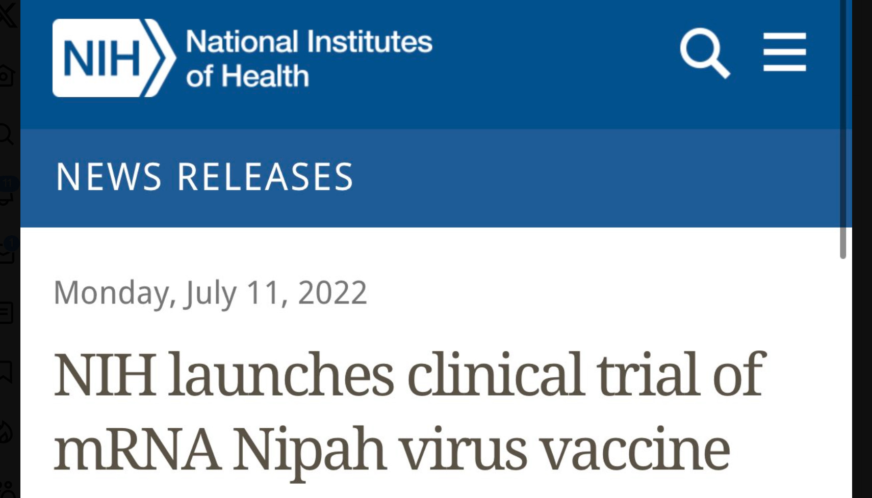 In case you are germaphobically fretting over this new viral threat, don’t worry! Just last year in July, Moderna and Fauci’s NIAID started a clinical trial for a new mRNA vaccine for … the Nipah virus! What good luck!