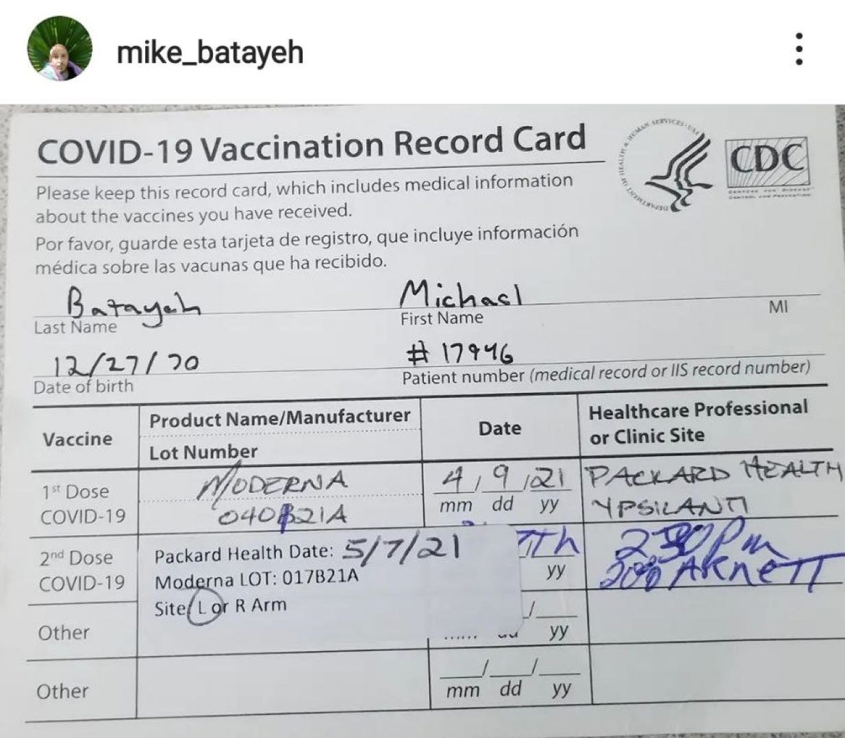 It took me about thirty seconds of searching around, but I quickly found the evidence I was looking for. And there it was, the dates when the actor had received his safe and effective covid vaccines: