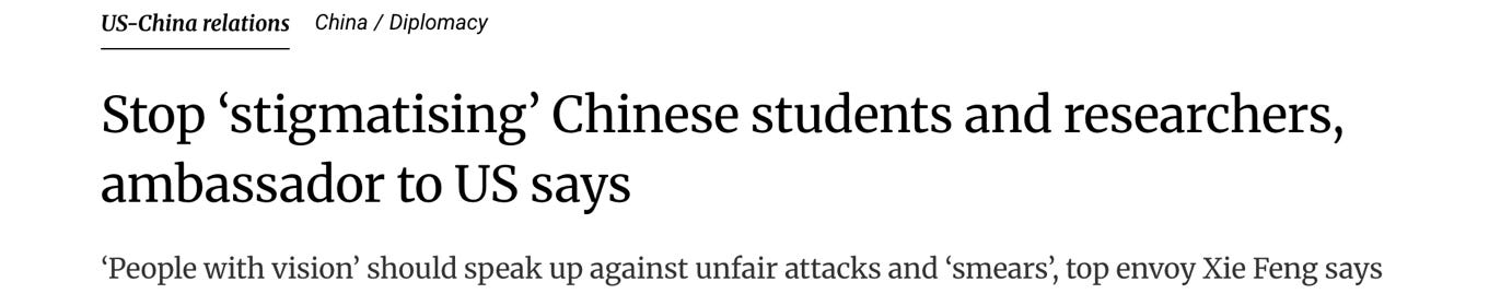 For Heaven’s sake! America is right now in an economic war with China. We just narrowly settled an “irresolvable” dispute over magnets (rare earths). It is probably not helpful for Trump to be going around saying mean things about Chinese students (see South China Post headline, above).