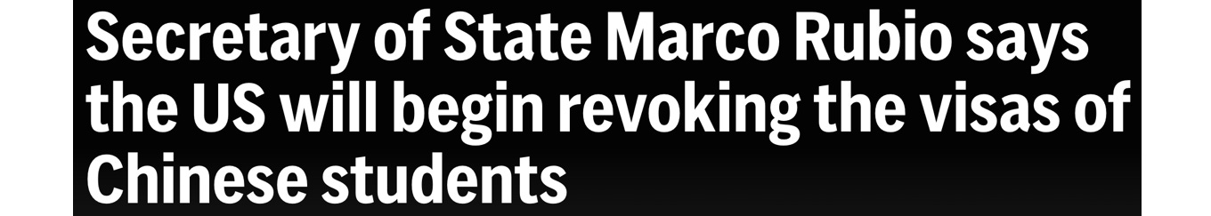 “Under President Trump’s leadership, the U.S. State Department will work with the Department of Homeland Security to aggressively revoke visas for Chinese students,” Secretary Rubio said, “including those with connections to the Chinese Communist Party or studying in critical fields.” So.
