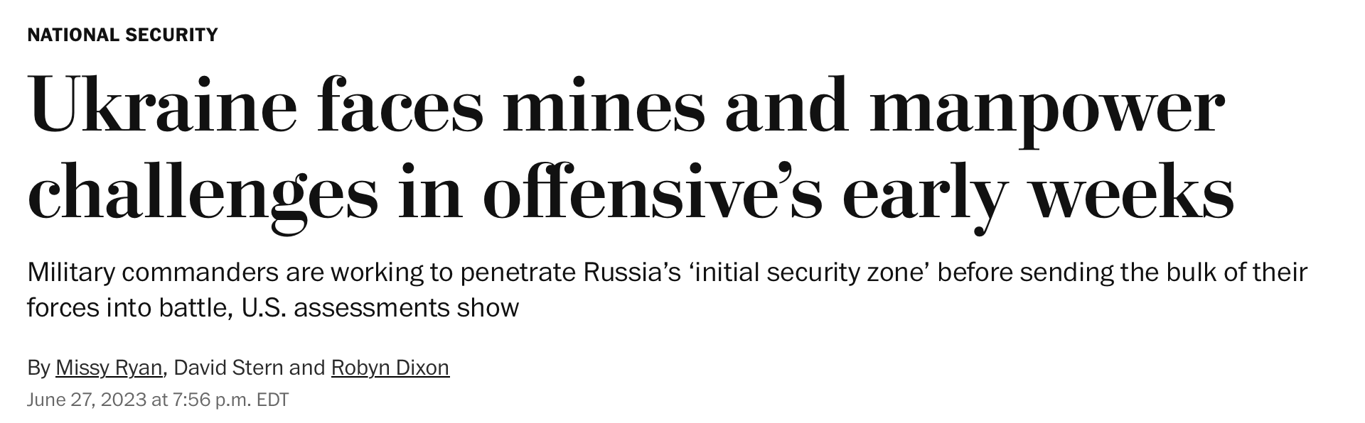 According to the article, on June 17th, the Wall Street Journal reported that Ukrainian forces “have mostly paused their advances in recent days” as command in Kiev “re-examines tactics.”